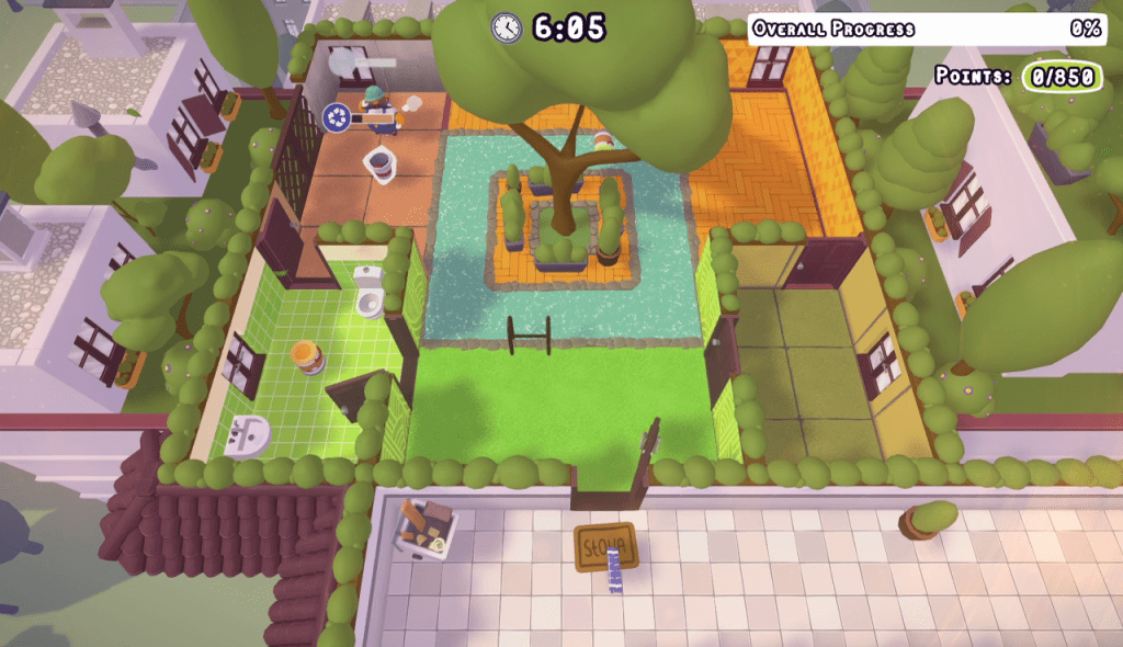 Tools Up! is a four player local Co-op (no online as of this moment) game reminiscent of Overcooked. The game play is quite chaotic with the game designed to bring as much trouble to the people playing as possible by letting players grab and throw items as well as each other. Running into certain objects, such as paint buckets, create a mess which causes players to slip, creating even more messes. The game play quickly devolves into chaos, testing and probably breaking, friendships.