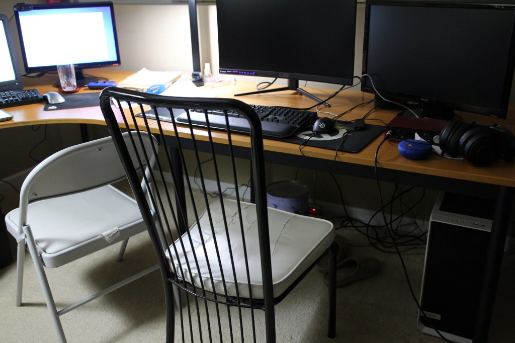 Don’t wait for ideal solutions. Use what you have around you. Think creatively. It won’t look pretty but better and more expensive equipment doesn’t make for better content. Pushing things off that can help your health is not worth it as well. As a content creator, I know funds are very limited so pinching every penny helps. The time will come when you will be able to afford and use shiny, fancy new equipment but no one starts out that way!