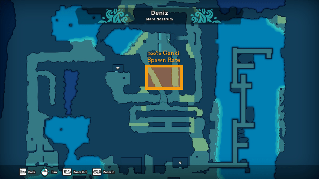 As you can see both of them rely heavily on wind and water types. A team comprised of a couple Ganki’s around level 20 will have an easier time defeating both of these opponents. Ganki can easily be found at the Thalassian Cliffs or the Windward Fort. This area shown below at the Thalasian Cliffs will have a Ganki spawn rate of 100% ranging from lvl 5 to lvl 8. The top of the Windward Fort will have a Ganki spawn rate of 95% ranging from lvl 12 to lvl 14. Ganki is an electric and wind type and learns DC Beam at level 7 and Chain Lightning at level 16. Ganki’s electric attacks will do 4 times the damage against Barnshe.