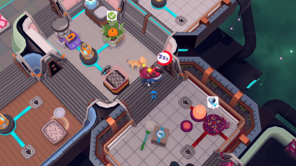 Out of Space is a frantic indie multiplayer action puzzle game in the same vein as Overcooked and Tools Up. Players take control of a colorful character and head onto a ship to clean and re-power the rooms before alien slugs take over.