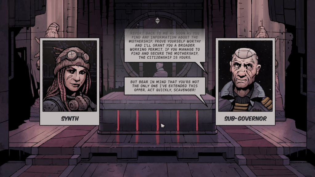Deep Sky Derelicts is a roguelike dungeon crawler set in a sci-fi cyberpunk future. The story’s beginning is similar to Altered Carbon in the sense that you play a highly experienced mercenary hired by the Sub-Governor to look into locating the long lost mothership. You do so by exploring the lost ships, or derelicts, floating in space to try and recover the data to locate it. Doing so would reward you with citizenship and a lot of money.