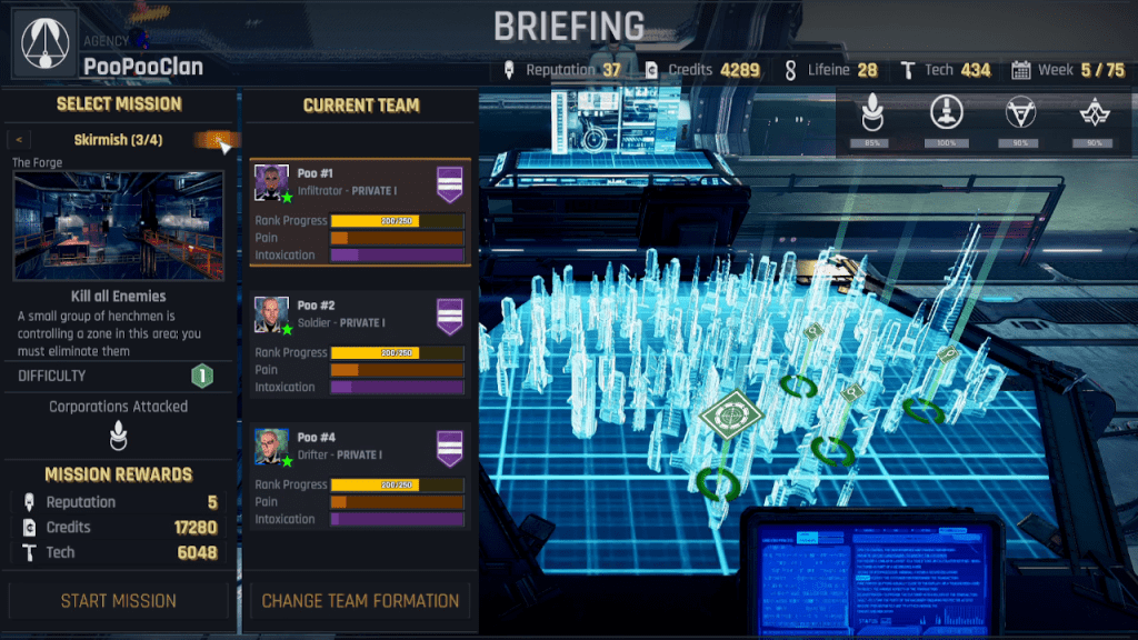 The combat phase is pretty straight forward but there are a lot of status buffs, debuffs, and minutiae to consider as you progress in the game. You can do things such as buff a sniper’s damage output, have someone mark a target, and then go for a headshot for maximum damage. There are a lot of ways abilities interconnect and that flexibility will lead to many different ways you can build your teams to defeat the enemy.
