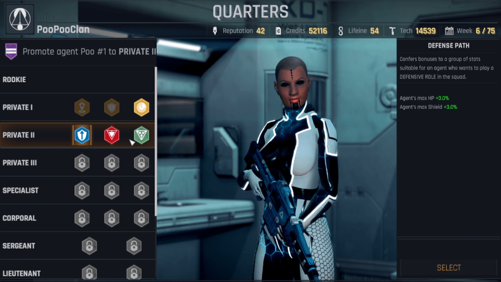 When you aren’t clearing dungeons, you are back in the hub menu where you can tweak many aspects of your team to improve your success rate. You can research passive upgrades that will allow you to do things such as upgrade weapons and skills. You can manage your troops by changing skills, upgrading abilities, and modifying equipment by upgrading it or swapping out modules.
