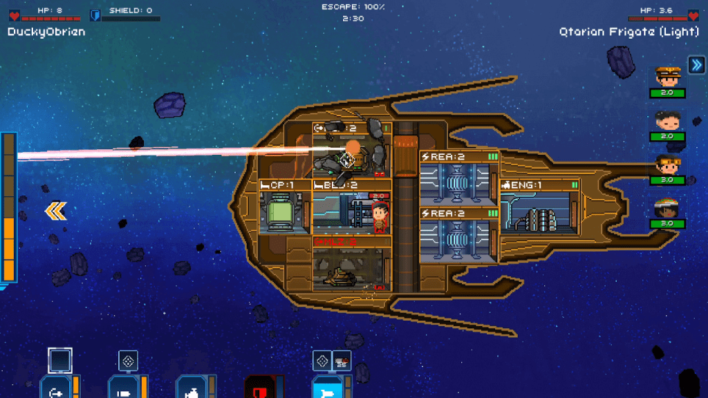 Along with resource units, you have many different weapons, power generation units to supply power to certain areas, crew quarters to increase crew size, and research tables. As the game progresses you can also upgrade your ship to increase the size and unlock new technology.