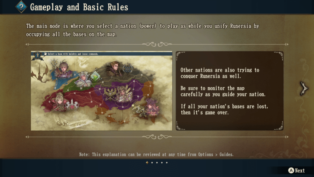 Before you start out on your adventure of conquest, you select a protagonist from one of the six countries of Runersia: the Norzaleo Kingdom, the Republic of Guimoule, the Shinobi Tribe, the Holy Gustava Empire, the Mana Saleesia Theocracy, and the United Islands of Mirelva. Each country has an interesting cast of characters, each with their own unique stories and motivations. Each character also has lines of voice acting in Japanese as well.