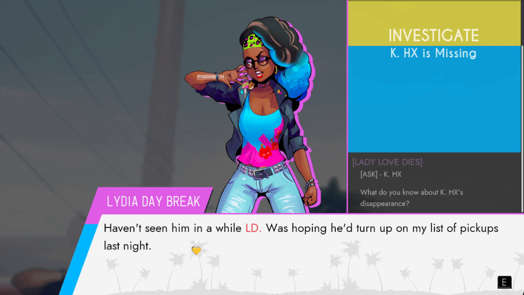 Paradise Killer is a good ole murder mystery, who dun it visual novel. You follow around Lady Love Dies (that is actually her name and one of the least strange names in the game), the top investigative agent on Paradise Island, where things are obviously not a paradise.