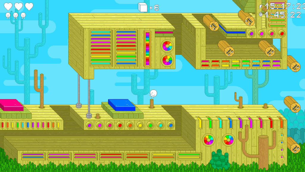 Strangeness and oddities aside, the core of the game is a very competent and well designed platformer. Some of the levels, such as the one with switches and rolling logs, show off some design concepts I haven’t really seen in other platformers. It controls well enough, and I even played on keyboard.