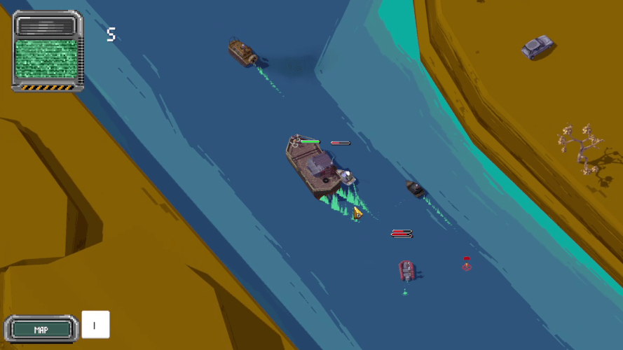 Outside of combat is a somewhat open world that you traverse via vehicles. Each vehicle can be equipped with mounted turrets and you can choose to engage enemy squads that occasionally come to pester you.