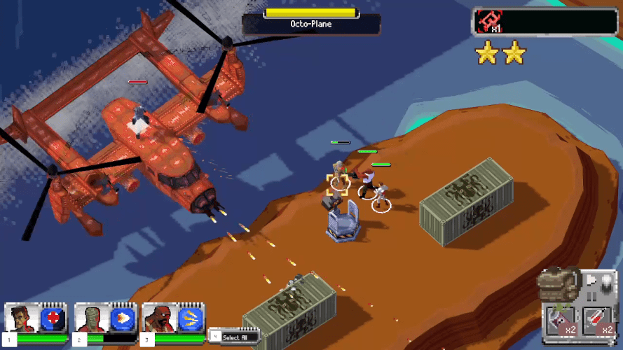 Dog Duty is a real time tactical squad game that captures the feeling of the old arcade machines. You control a team of three mercenaries on a mission to stop the Octopus Commander from conquering the world.