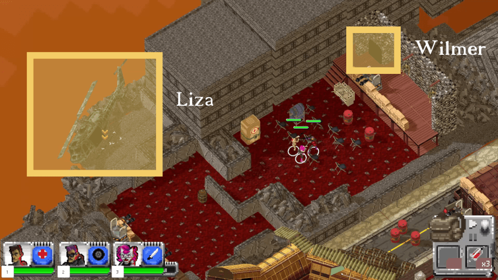 Once you through and jump the ramp, you’ll find a hidden location swarming with enemy troops. Wilmer will be located in a marked prison cell and Liza will be located in the crashed helicopter as shown below.