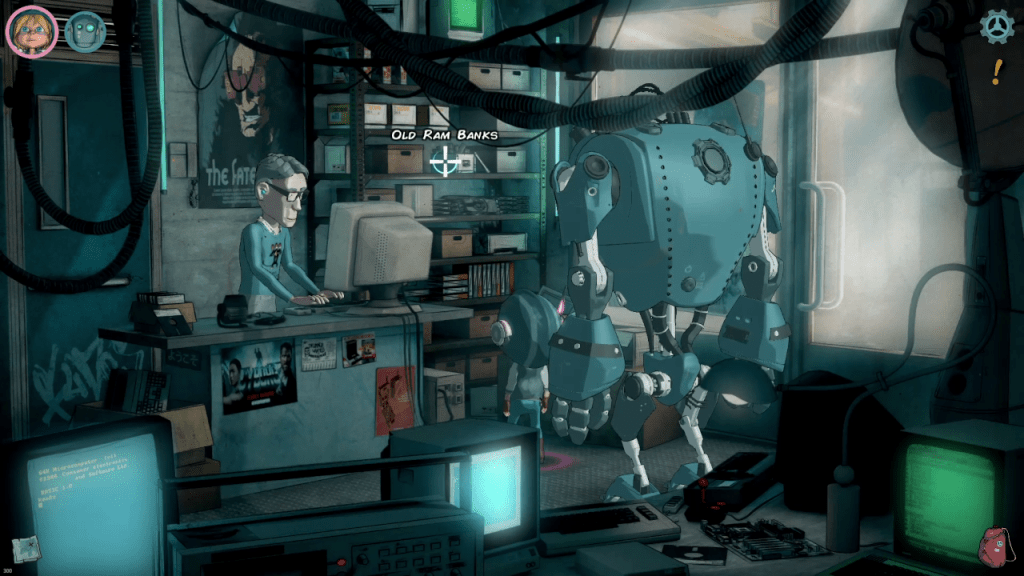 The game play is a straight forward and rather traditional point and click adventure game. You move around locations, talk to quirky individuals to get hints on what you should do next, and mouse over every pixel to find items you can interact with. Then you combine said items to solve puzzles and progress in the story. For the most part, the puzzles in ENCODYA are fairly logical and the game does give you enough clues to find the solution on your own most of the time. It can still get a bit difficult at parts and thankfully the game does offer an easy mode where you can highlight most items and get in game hints from SAM.