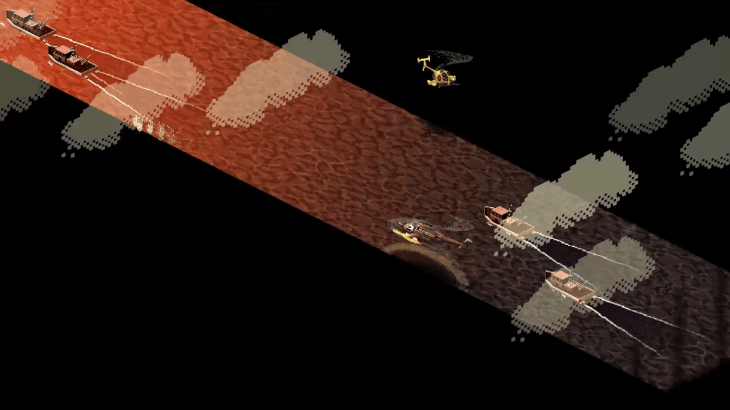 The game has a different feel for each chase sequence. For example, the train sequence feels like a side scrolling action game. Then it switches to a top down driving sequence in a car. Then it switches to a 3D motorcycle racing sim. And so forth.
