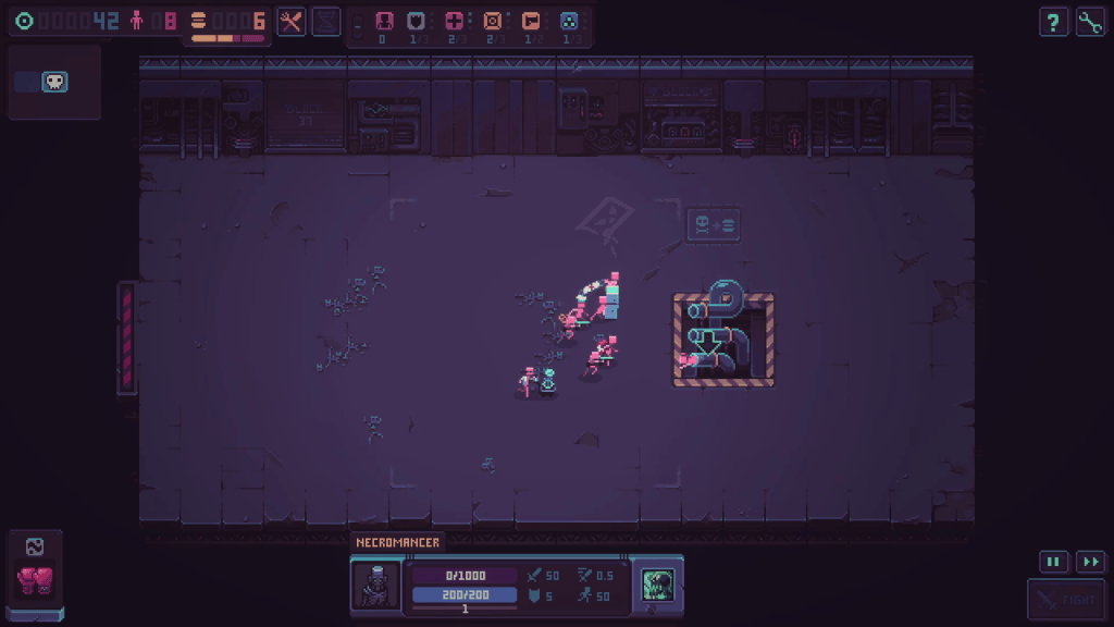 There is strategy required beyond the combat as well. Exploring each room in the dungeon uses up food. If you don’t feed your tiny humans, they will get a debuff that lowers their amour and damage so it is very important to keep them well fed. This creates a risk versus reward system where exploring the dungeon fully may net you more tokens and other surprises, both good and bad, but at the cost of requiring food. If you are short, you can always sacrifice a unit to turn them into food. I guess friends can be food, Bruce.