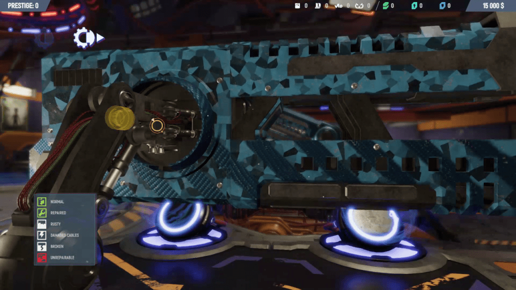 At the workstation, you will see the damaged parts as a yellow holograph. You will need to remove all the parts blocking access and finally replace the part with one that is fixed in your stations, or with a brand new part purchased from the store. Once the damaged part is replaced, you assemble everything back again and let the client know the job is finished.