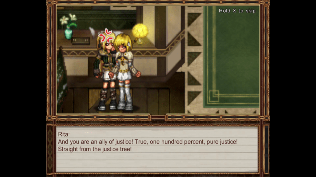 The hentai aside, False Myth actually has some promise as a traditional Japanese role playing game. The writing of the characters, from what I’ve seen so far, is quite silly, lighthearted, and full of personality. The art style, music, and the world around you seems full of life and it brings you back to playing the old role playing games on the Super Nintendo.