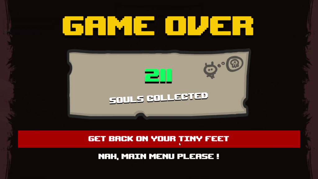The game is pretty challenging and thankfully there is an easy mode, which gives you more lives, more ammo, and more souls. There is definitely a learning curve to the game and as with all roguelikes, once you die you must start over from the beginning.