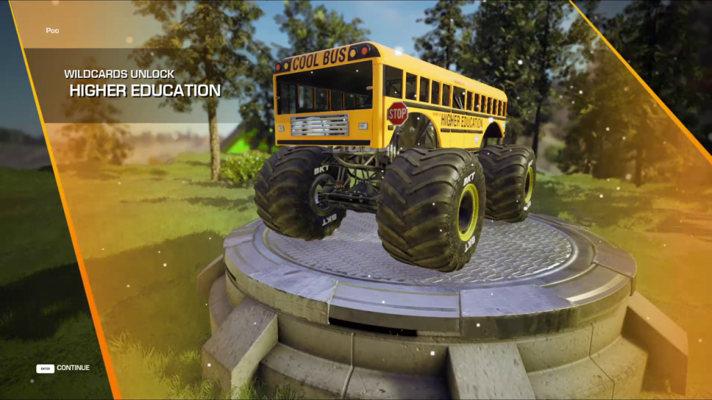 For the career mode you usually participate in three events. They can range from a rally, to a destruction course, to a stunt performance or something else entirely. You get scored in each event and at the end you will usually unlock a new truck or new events and courses. Your truck levels up as you use it more and that increases its stats, making it handle better on the course.