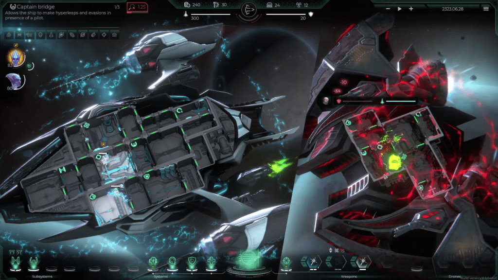 After you pick your ship and crew, you are immediately dropped off into the world of Trigon. From here, you can see where your mission objectives are located and plan your itinerary. After jumping into a system, you will run across an event or combat encounter or both (with a chance for an additional combat encounter, oh joy). The events are always high risk, high reward. For example, one event gives you the option to help a team of scientists stranded on an uninhabitable planet. If you succeed in fixing their life support systems, you are handsomely rewarded while if you fail, you will suffer damage to your ship. Many of the random events will take away a crew mate if you fail as well so be cautious when choosing what to do.