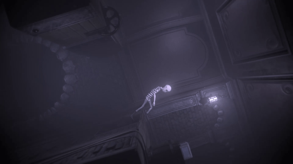 The levels are cleverly designed and unpredictable. This keeps the puzzle solving fresh as each one is pretty unique. The art style also pairs well with the puzzles. It just looks very grotesque and very surreal. The visual style is fantastically morbid and imaginative. For example, the street level has four switches that you need to turn on using severed arms. Another level has a terrifying grandmother figure in a wheel chair chasing you.