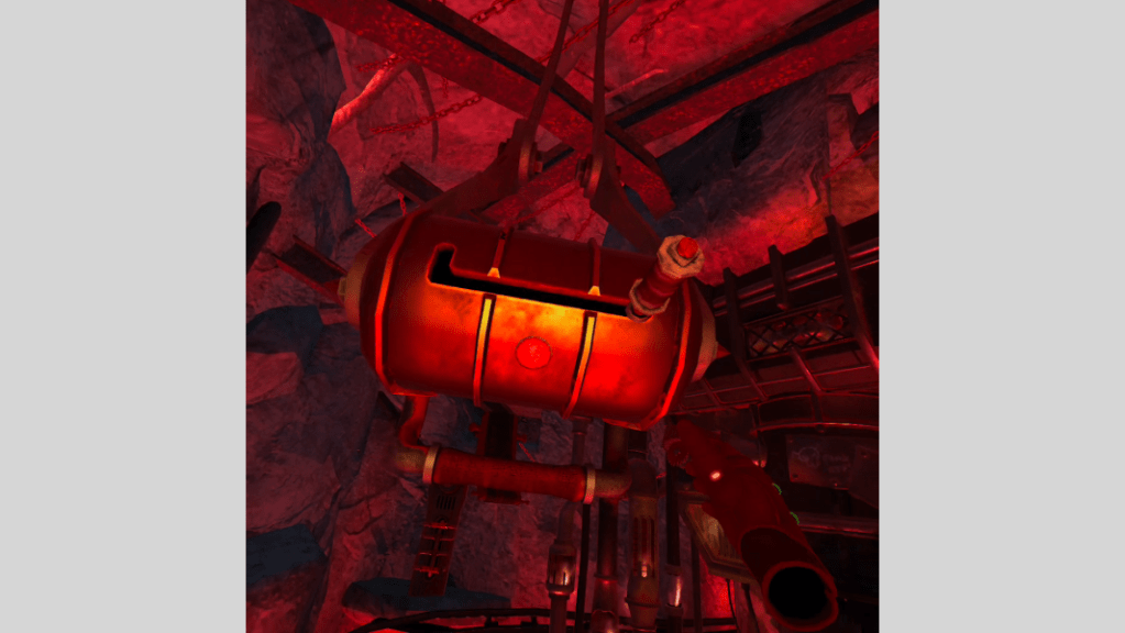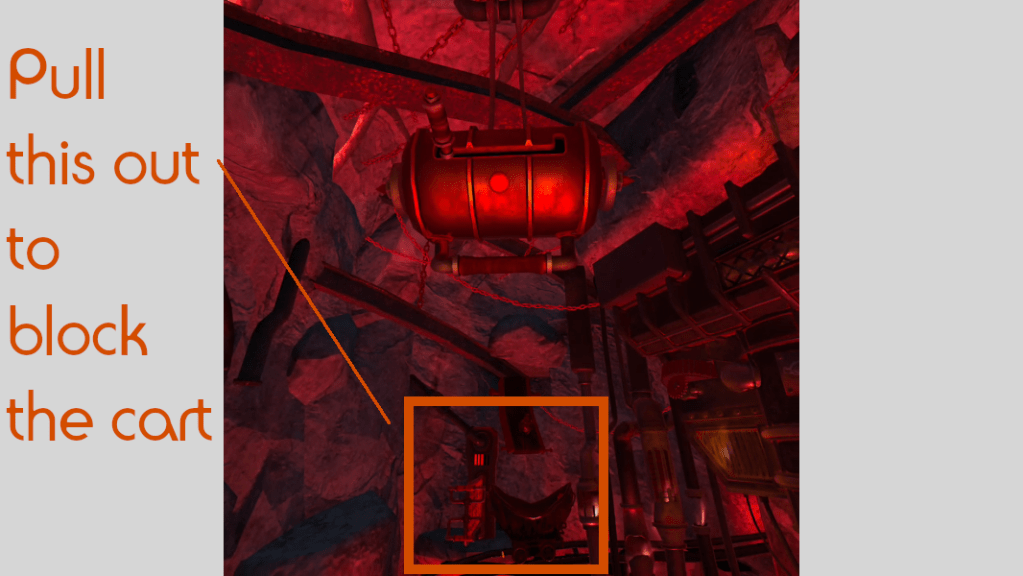 13. Pull the handle across the room in front of you to block the cart and make the grenade drop into the cart.