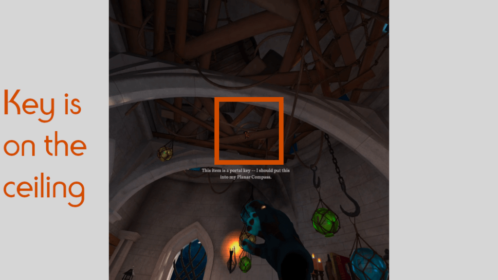3. Use Shadow Hand to grab the Feyland portal key stuck on the ceiling above you.