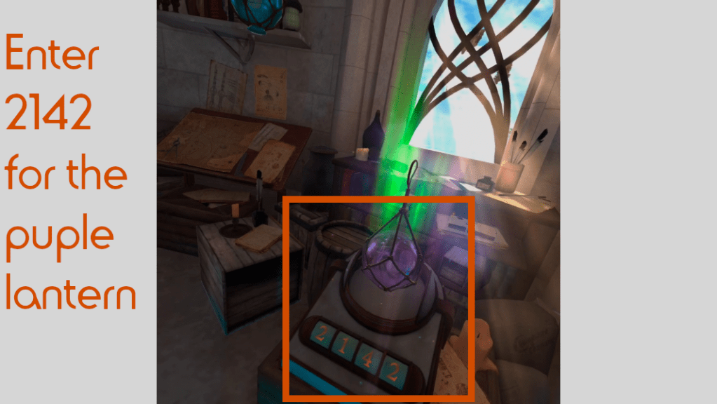 1. Enter 2142 into the box on your immediate right to unlock the purple lantern.