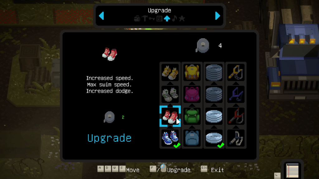 Aside from running for your life from zombified animals, the main thrust of the game play loop is exploring. Each area has a puzzle to solve, as well as many collectables, so the level design encourages you to explore every nook and cranny. The collectables can be simple cosmetic items or clones. Freeing a clone will earn you one duct tape, the currency used to purchase upgrades for Jack. The upgrades are in four categories and will increase your movement based stats, inventory space, garbage lid space, and your slingshot. Picking up a garbage can lid will block one attack from an enemy and in a game where every attack will kill you in one hit, this is a pretty handy upgrade.