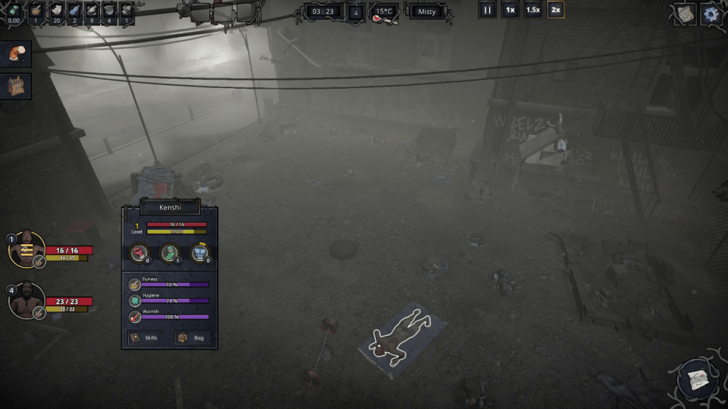 You have to manage meters for your fighters such as hunger, sanitation, and warmth. The game gets progressively difficult as obtaining food becomes harder and life becomes more difficult during the colder months. It honestly brought to mind another fantastic management sim, Frostpunk. Garbage certainly isn’t on the same level of balance and polish but you do have to make some hard decisions on the fly or risk losing some people.