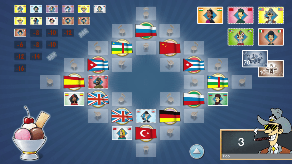 This version of Cafe International is a faithful translation of the original board game. The premise of the game is very simple, you must seat guests of different nationalities at tables with the goal of filling all four seats. The rules are simple and easy to grasp once you start playing the game.