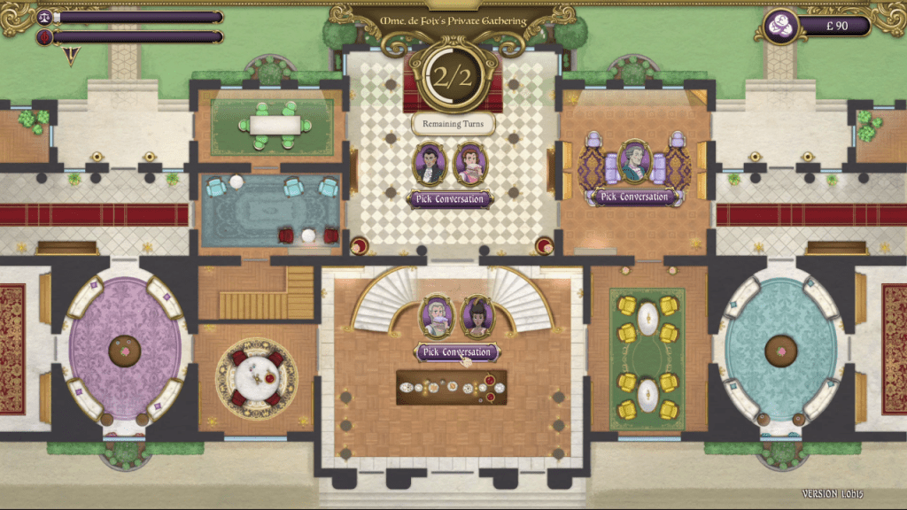 Not only do you need money for clothes, you also need to pay for your housing and your servant’s wages. This creates a dynamic balancing act of having to attend parties to gain credibility and favor while obtaining and selling enough gossip to make enough money to buy the dresses to attend the parties in the first place, as well as pay for your living expenses.