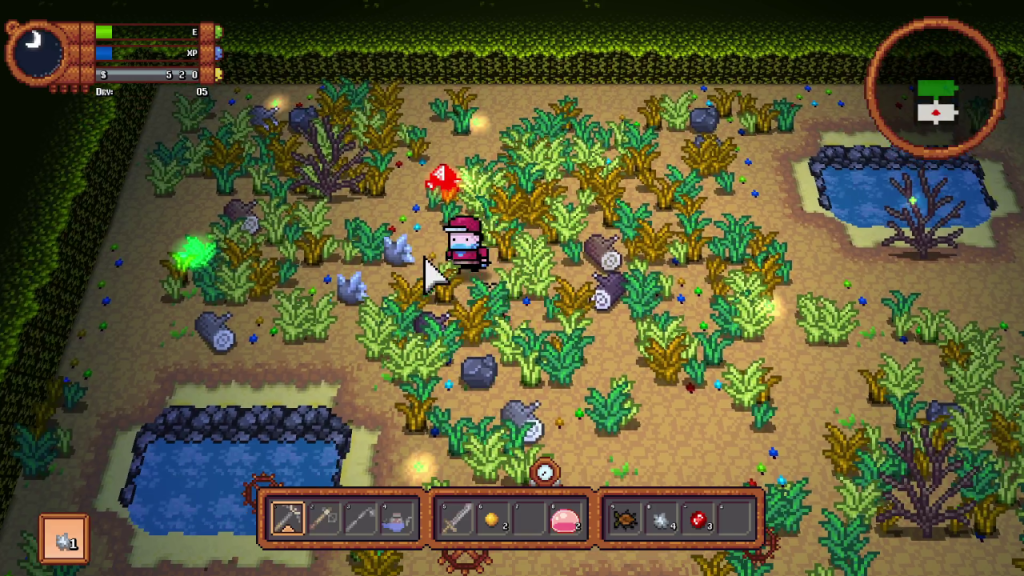 The farming is pretty standard fare. You start out on a dilapidated farm filled with trees, rocks, and logs. I wouldn’t recommend clearing out the entire farm at the start as your stamina meter is pretty small. As you chop down trees and break apart rocks, you level up and learn new crafting recipes.
