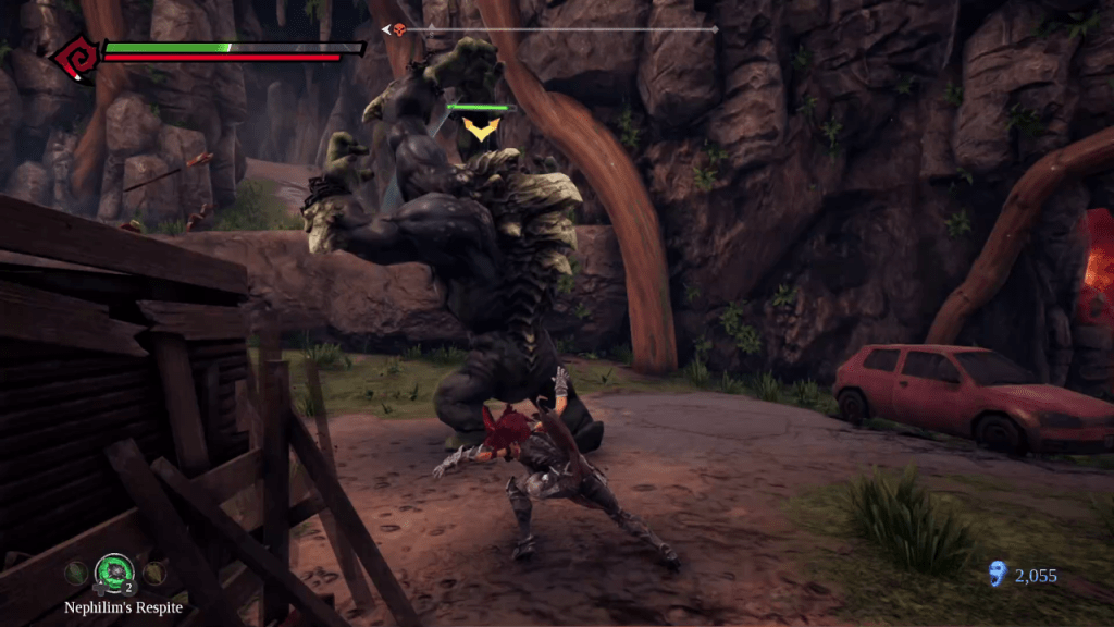 Moving on to the game play of Darksiders III, it took me a bit by surprise. The game is basically a Dark Souls clone. You have bonfire and Estus flask equivalents, although the flask is not restored at bonfires but by defeating enemies or by dying and respawning at a bonfire. Bonfires are essential check points to save progress and serve as a respawn point and Estus flasks are healing potions with limited uses.