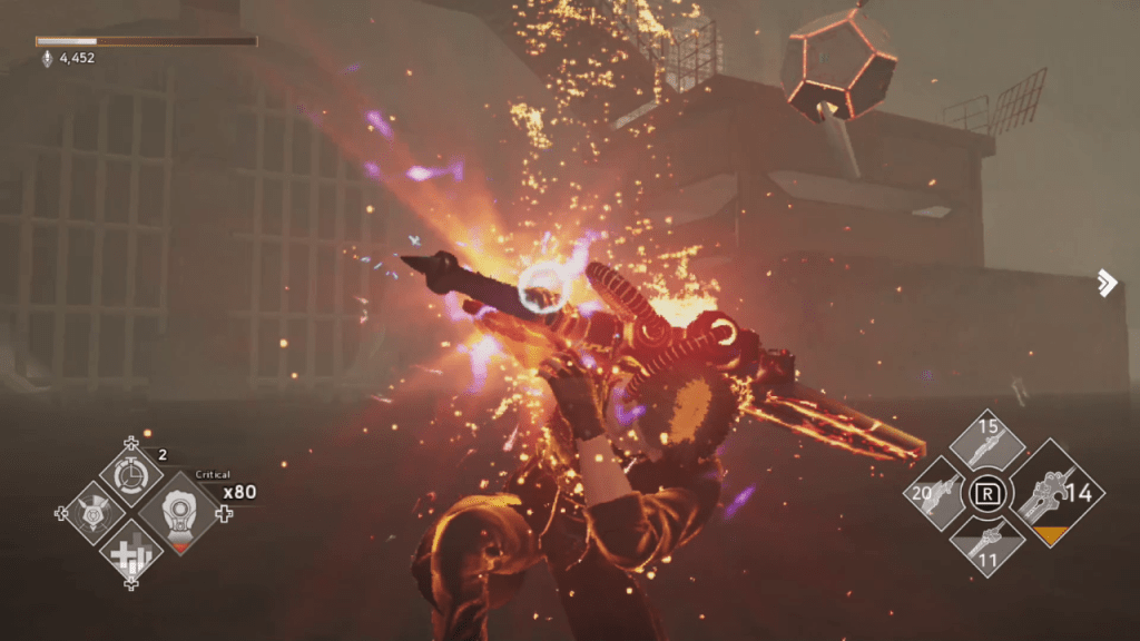 Another reason why the combat feels so great is the weapon rotation system. You have four weapons, the basic sword, a katana, a large claymore, and a lightning sword. Each sword has strengths against certain enemies. For example, the katana will do extra damage against biological enemies while the claymore will do more against your robotic foes. Your later encounters will have mixed groups so you’ll need to switch between all your weapons. Each weapon has a set of combos and they all feel satisfying.