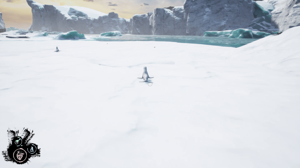 As you explore the land, you can kill seals and wolves to obtain meat. The seals may also have blubber while the wolves have a chance to drop sinew. There are rocks and wood lying around on the ground that can be used to start fires. Chests and crates can hold tea leaves, metals, and other materials used for cooking and crafting goods.