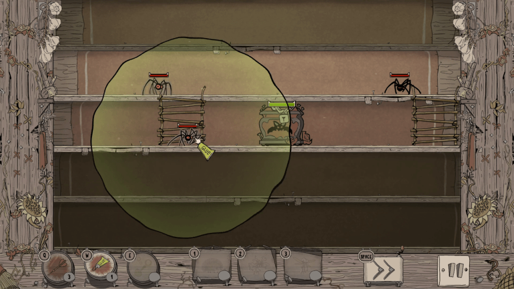 The basic premise of the game is simple. The game takes place on a shelf with jars. You must break all the jars while protecting your chest. Some jars are marked with friendly minions you can use or some power ups. Other jars are marked with unfriendly animals and insects. The unmarked jars may contain friendly or non friendly units. It becomes a light puzzle where you have to strategically break the jars and place units in the right places to defend your chest.