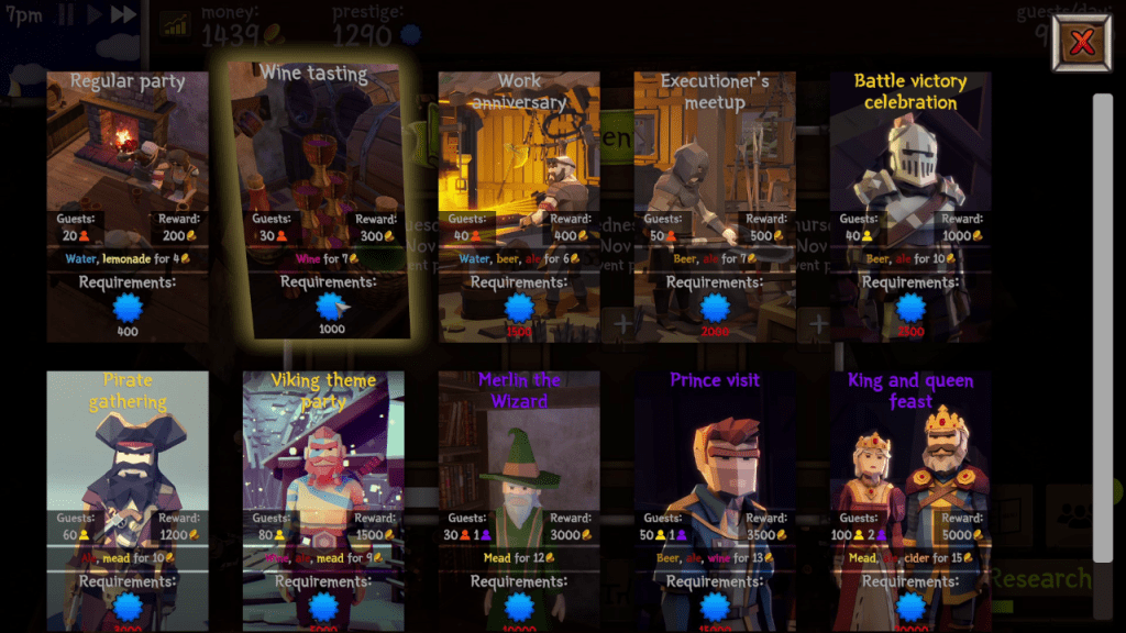 You also have a very simple research tree that unlocks things such as new drinks and the ability to hire more workers or build stairs to make an even larger tavern. The research is usually unlocked by the number of customers you serve, making it a very straight forward process.