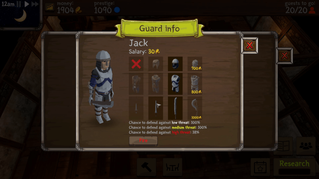 Overall, Tavern Master is a very chill game to play. The game play is simple but rewarding and it’s nice to see your tavern grow. After each day is done, you take note of inventory, refill what you need, level up any employees, and give the unhappy ones raises. If you have enough money saved up, you can redecorate your tavern, which also has the functional purpose of attracting more customers, and then start a new day. It’s a very relaxing, great way to kill time.