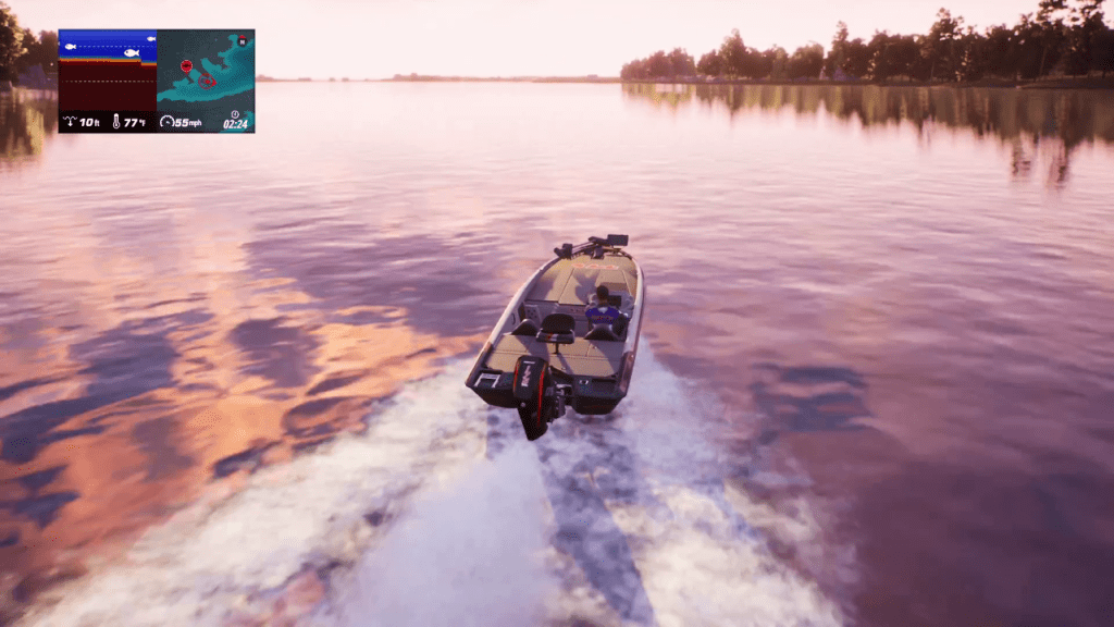 The game has many modes but most play out the same. You travel out into the water on your boat. The detector on the upper right hand corner of the screen informs you of the general amount and size of the fish in the area. Once you pick a spot, you can start fishing.