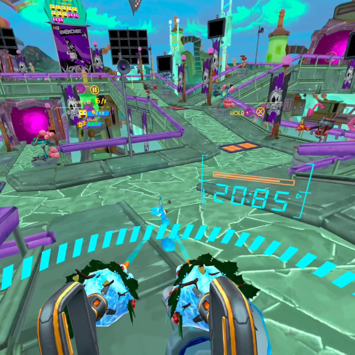 Captain Toonhead vs The Punks From Outer Space is a pretty hectic VR tower defense game. You build towers and upgrade them while shooting enemies with pistols and stunning them with chanclas. Yes, chanclas are in the game.