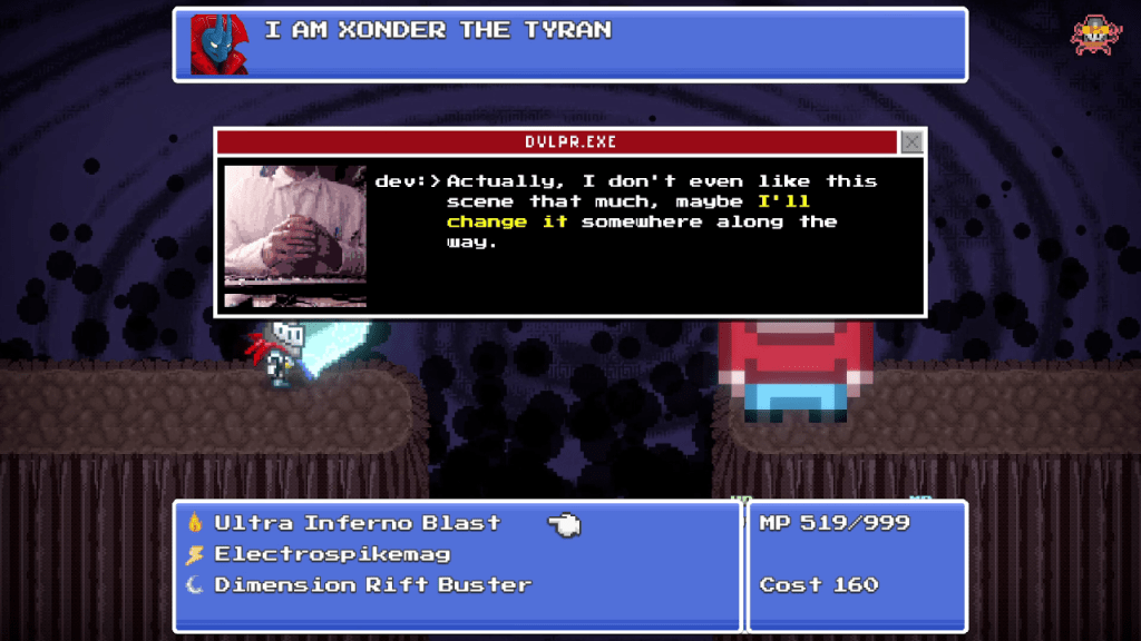 Except you weren’t supposed to be there so the developer interjects himself into the conversation between you and the boss, with many protests from the final boss about his spotlight being stolen, and then you are whisked away to the beginning of the game.