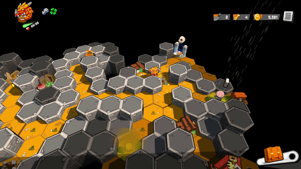 The goal is to reach the end and defeat the boss. The boss encounters are pretty involved as the bosses have large health bars and they throw a lot of different attacks at you. The game does get pretty difficult towards the end and you will eventually die. The game is like a roguelite in that you will have to start your run over again from the beginning but you will have unlocks that will help you in future runs.