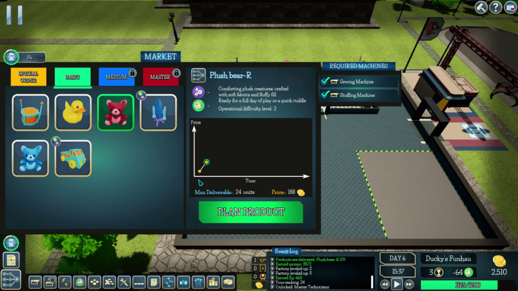 The final step is to choose a product to produce. You can observe the market trend data to see if profitability of the product is going up or down. There are upgrades to let you see more advance market data to better plan out your production lines in terms of profit. After selecting your product, you then simply link the necessary machines to each step in the plan and start production. The robots will take care of everything and all you have to do is sit back and relax and watch the money roll in.