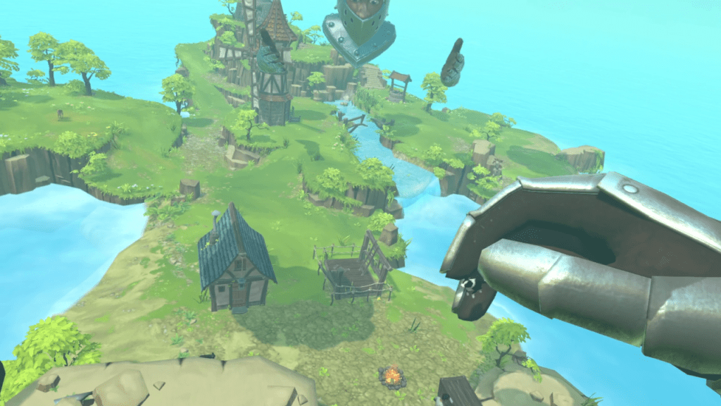 Playing in VR also gives you more control and things to do in game. You don’t have to just sit idly by and watch your villagers do all the work. You can actively pick up and carry materials around to help your tiny kinsmen. It is kind of funny that even though you are this massive giant, you can only carry one piece of wood or stone at a time.