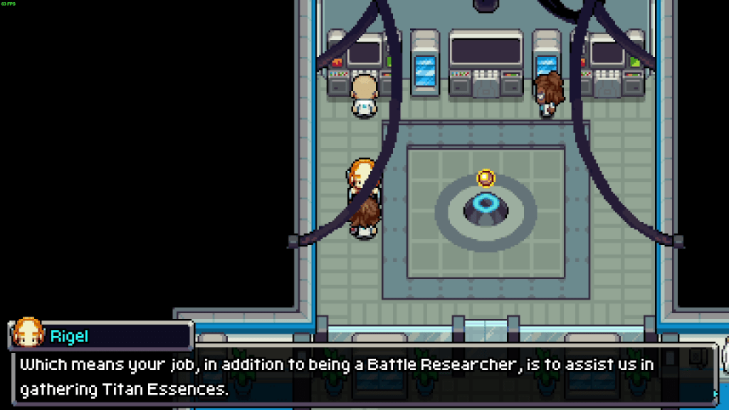 The game also gives you a clear objective at the start of the game. Instead of wanting to be the very best, the best there ever was, your goal in Coromon is to investigate Titan Essence. It’s a mysterious element with unlimited potential. Each Titan Essence is located in a specific part of the world and is guarded by a mythical Coromon. You start your journey by heading to a town to have a specialist install the Titan Essence Collector into your gauntlet.