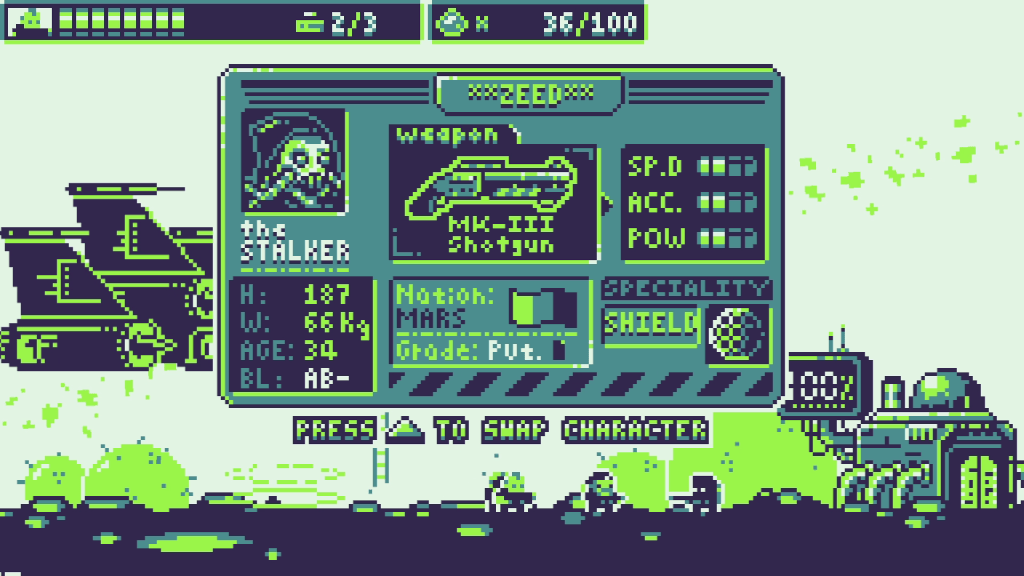 B.I.O.T.A. really feels like a modern Game Boy game. The game has a very limited color palette and it really brings you back to the days of playing games like Pokemon on the Game Boy Color and squinting at the screen when playing during the daytime because the screen’s backlighting was nonexistent, not to mention highly reflective.