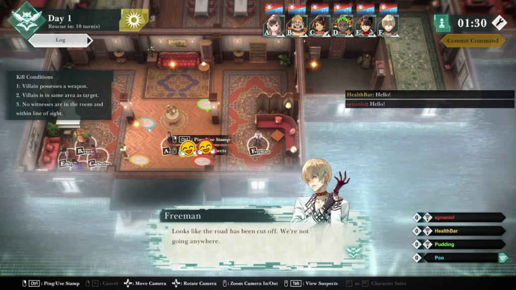 Right from the get go, the other player took control over a character from me and moved it immediately to a weapon. They also proceeded to control another character to procure a weapon and made movements that were highly suspicious. To make a long story short, I moved the three remaining characters into a room to protect each other during the last round. As it turns out, one of the characters that they weren’t controlling was the villain and he was waiting this entire time for me to move them together. He then controlled the third character and moved them out of the room and committed the crime. I was out played!