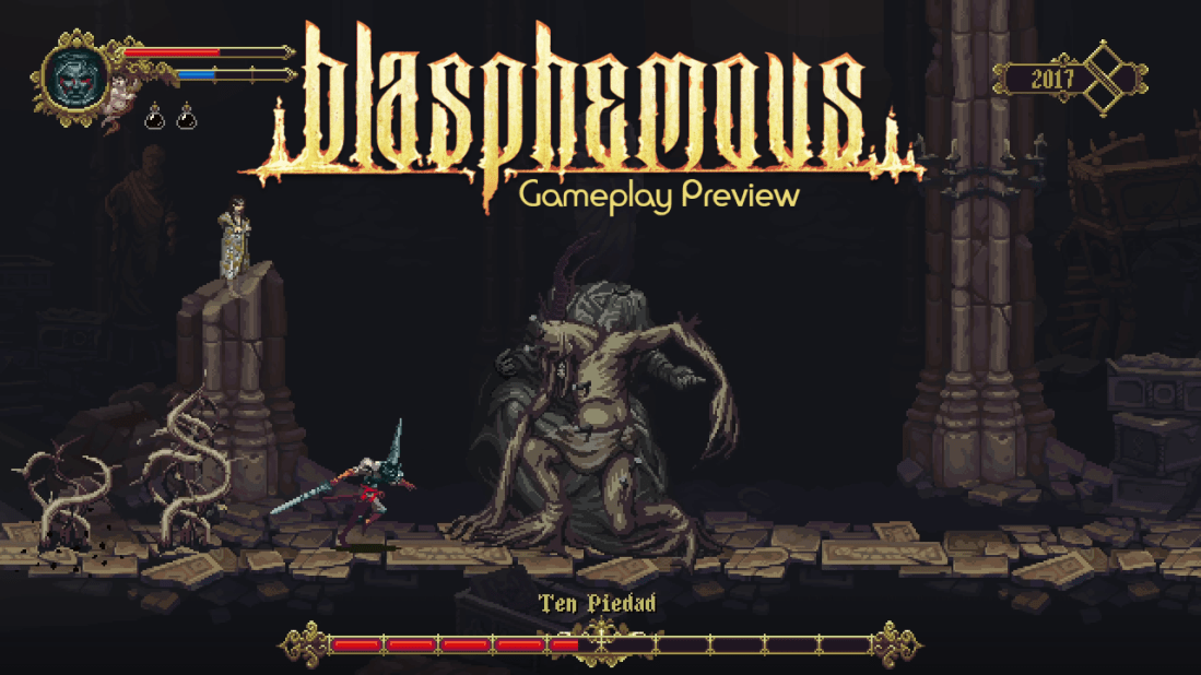Blasphemous is a very competent and well made game paired with an incredibly strange tone. The game is very self serious and never breaks from its odd and dark themes for even a moment. Let me give an example to elucidate the overall feeling of the game. To increase my health points, I ran into a lady who had many swords impaling her. After a dramatic speech, she hands me one of the swords and this somehow increases my health. Nothing makes sense yet Blasphemous manages to make the absurd seem normal. Continue reading Blasphemous Gameplay Preview - Weirdly Dark Metroidvania